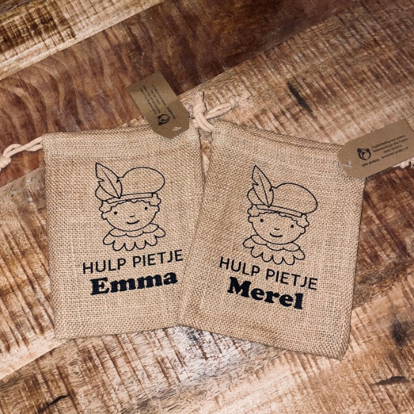 Jute Zak Hulppietje met Naam – Verzamel al je pepernoten in stijl!